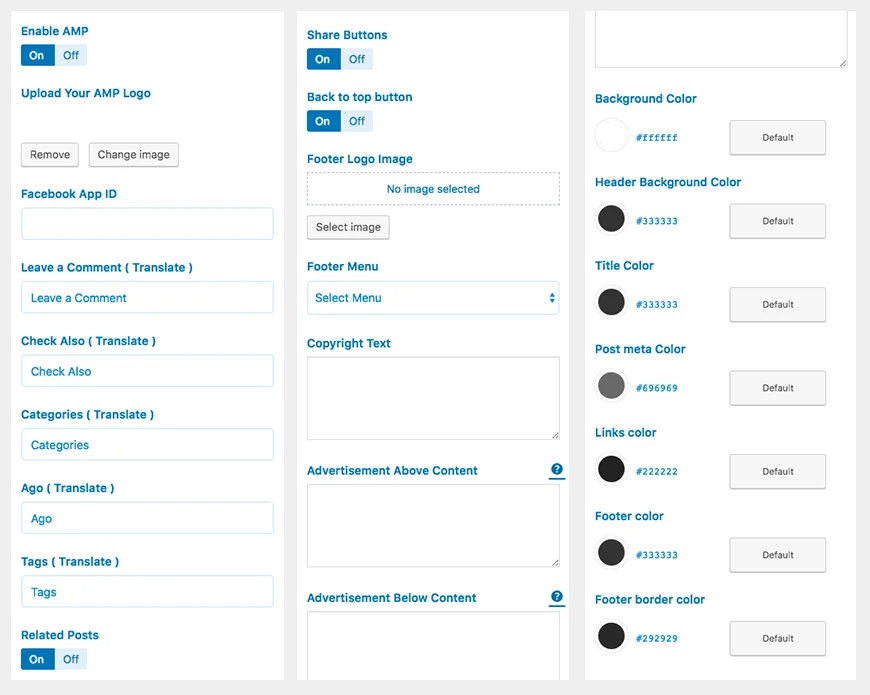 With Noor & Okab and AMP Plugin via the wordpress customizer you can: